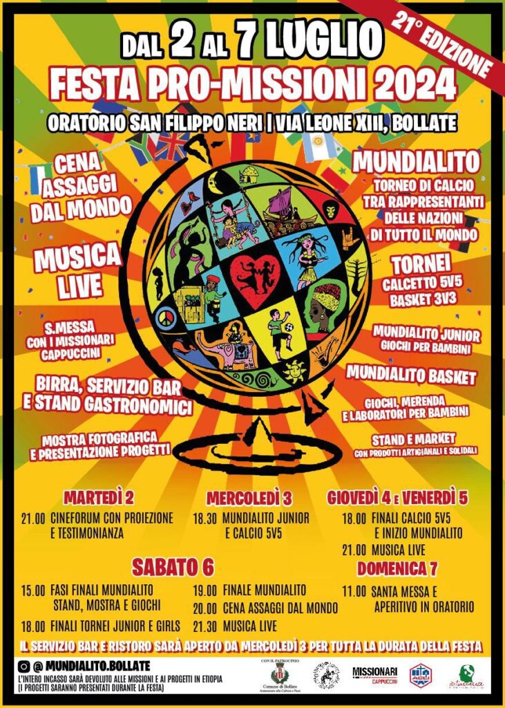 Dal 2 al 7 luglio presso l’oratorio San Filippo Neri, in via Leone XIII a Bollatesi terrà la VENTUNESIMA edizione della FESTA PRO-MISSIONI. SABATO 6 LUGLIOore 15.00: […]