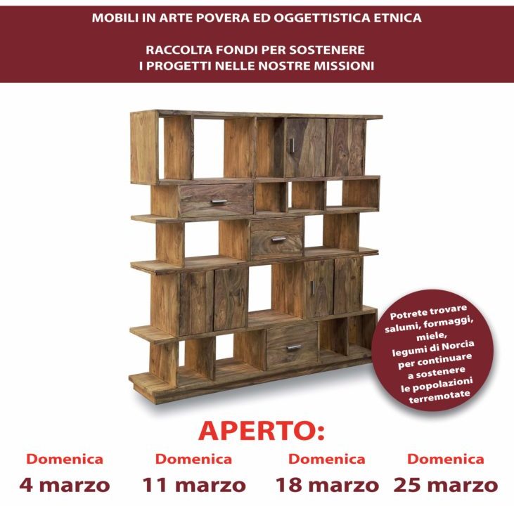 APERTURA STRAORDINARIA DA DOMENICA 4 MARZO A DOMENICA 25 MARZO. Troverete mobili in arte povera e oggettistica etica, come raccolta fondi per sostenere i progetti delle […]