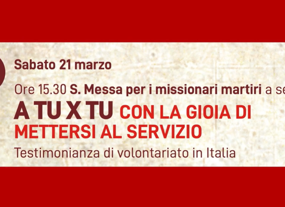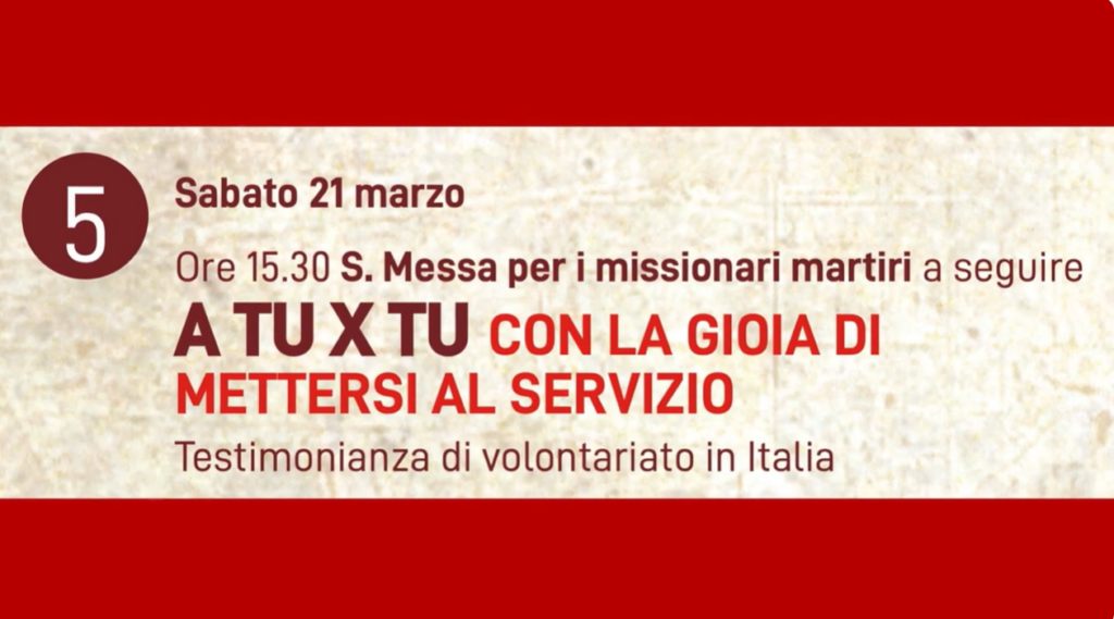 Sabato 5 aprile ci sarà il sesto incontro del cammino di formazione e discernimento per vivere esperienze in missioneL’incontro di formazione ha titolo: “A TU X […]